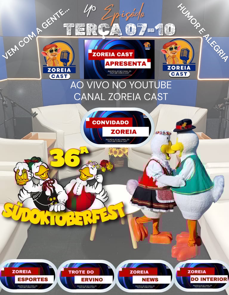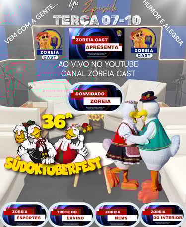 Nosso objetivo? Se divertir e levar muita alegria pra você, nosso telespectador! Terça-feira, ao vivo, no canal Zoreia Cast no YouTube!